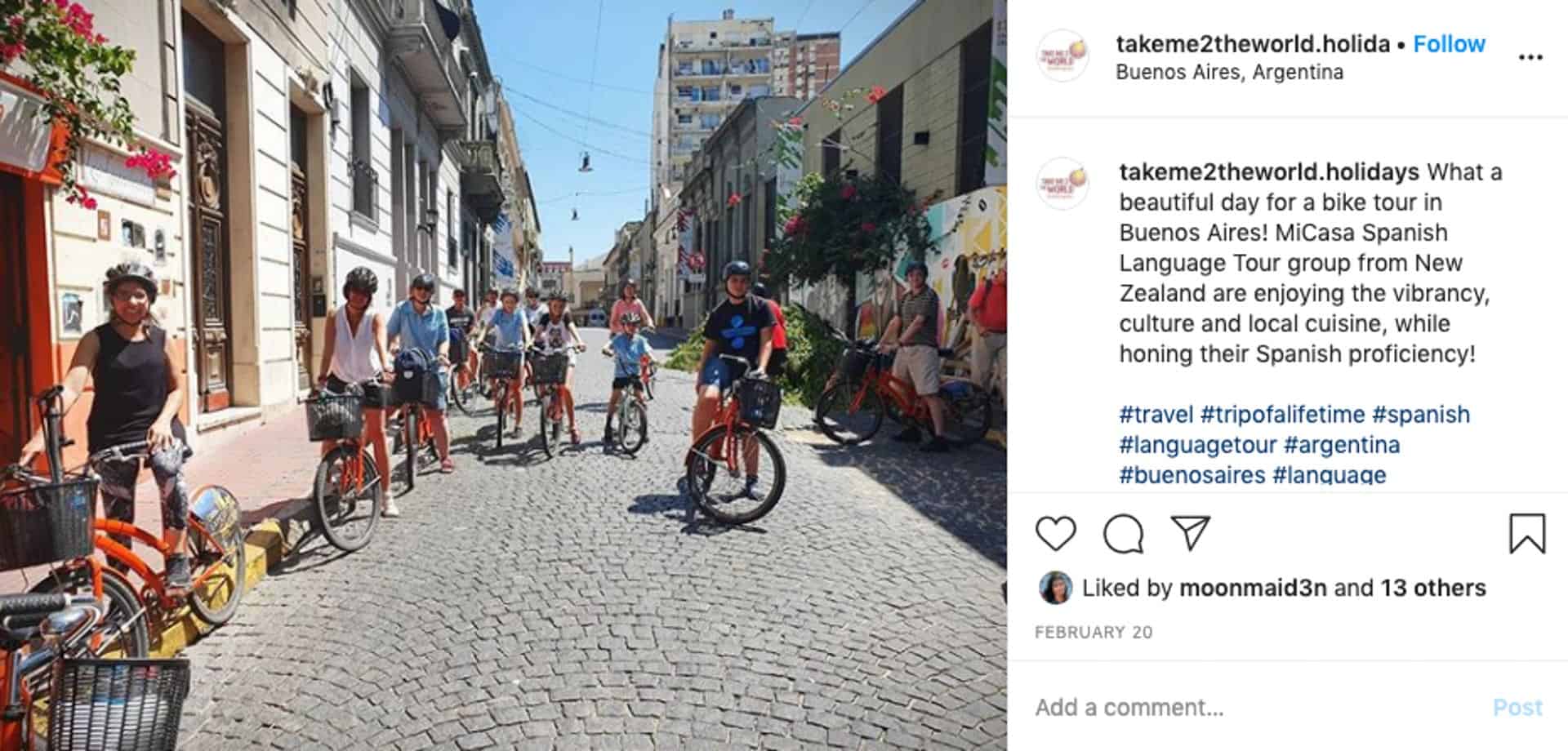 We visited so many wonderful places, La Casa Rosada, el Obelisco, Plaza de Mayo, Caminito, Tigre, we also travelled by bus, train, ferry and bike. We ate lots of Asado, we learnt about mate and we enjoyed a wonderful Tango show. Plus we had 4 days Spanish Classes in the beautiful Academia Buenos Aires. A wonderful trip to remember forever!!